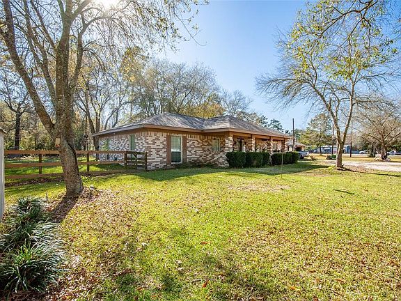 HIGHLY DESIRABLE NON-RESTRICTED 3.7 AC TRACT OF LAND WITH HOME ON IT LOCATED AT THE CORNER OF FM 2100 AND MEYER RD in Huffman! Just a VERY SHORT distance from the Grand Parkway with TONS OF POTENTIAL for any type of development or opportunity you desire! This property has a 3 bedroom 2 bath home with hard surface flooring throughout. Formal dining room area as well as den or study area; family room with fireplace. Nice sized kitchen and huge utility room and pantry. GREAT covered front and back porches! This is ideal for living in or make it an office for this unrestricted property and your development ideas! Tons of room for growth for a workshop, office, barn or anything you need. Horses and chickens allowed as we do not have restrictions. Just minutes from FM 1960 and Hwy 59 as well.