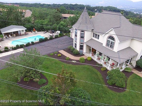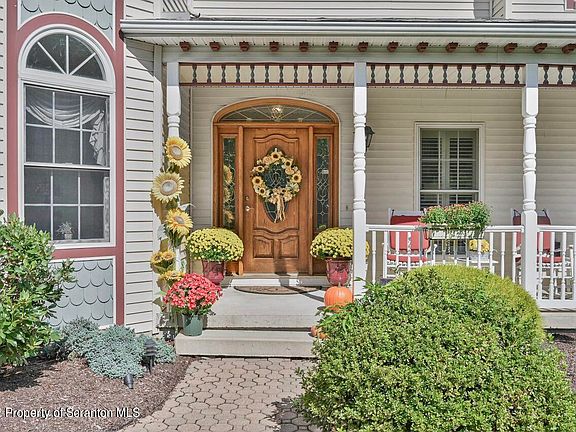 Charm abounds in this 2002 built Victorian style home that has been designed and lovingly maintained by the owner. DUNMORE HOME with a Scranton mailing address. The large wrap around front porch is the perfect setting for a spot to relax. The foyer leads to a living room, a dining room with two sets of french doors, an open kitchen and family room with gas fireplace and french doors, a 1st floor office and half bath that that can be converted into a full bath to have a first floor bedroom/bath. The lovely staircase leads you to the 2nd floor with 4 bedrooms and 2 full baths and lovely sitting area. The master bedroom is spacious and has a walk in closet. Enjoy the master bath with a stunning soaking claw foot tub and separate spa shower. Gleaming hardwood floors throughout the home, central air, great flow, a large lower level is ready to finish with plumbing for a bathroom and high ceilings. The large 2 car garage is heated, the home has gas hot water heat with 3 zones. Security system, whole house fan, floor safe, 2nd floor laundry, beautiful plantation style shades in some windows., Baths: 1 Half Lev 1,Full Bath - Master,Modern,2+ Bath Lev 2, Beds: 2+ Bed 2nd,Mstr 2nd, SqFt Fin - Main: 1356.00, SqFt Fin - 3rd: 0.00, Tax Information: Available, Formal Dining Room: Y, Modern Kitchen: Y, SqFt Fin - 2nd: 1386.00, Additional Info: This is a DUNMORE property. Welcome home and expect to be impressed with this stunning home and gorgeous landscaped 1.3 acre lot. The home was built in 2002, one owner, the inground pool was installed in 2013 and features a 26x11 relaxing cabana with its own kitchen and half bath. A spacious 2 car garage and 2 driveways offer plenty of off street parking for all of your family and friend
