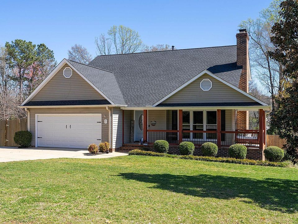 Within the tranquil, tree-lined streets of the Meadowbrooke community, a meticulously crafted residence awaits, presenting an ideal blend of suburban serenity and refined living. This distinguished four-bedroom, two-and-a-half-bathroom home occupies a coveted corner lot, harmonizing contemporary refinements with timeless architectural elements. Upon entry, the residence unveils elegant, engineered hardwood flooring that seamlessly integrates the main level's living spaces. The focal point of the home is a dramatic two-story living room, anchored by a wood-burning fireplace, fostering an ambiance of warmth and sophistication. The kitchen, designed for both functionality and aesthetic appeal, features quartz countertops, a sophisticated backsplash, a substantial center island with stone accents, and stainless-steel appliances, all complemented by abundant cabinetry. The primary suite, thoughtfully positioned on the main level, provides a private sanctuary, complete with double vanities and a generously proportioned walk-in closet. A half-bathroom and laundry room further enhance the main level's practicality. The upper level accommodates three additional bedrooms and a full bathroom, ensuring ample space for family and guests. The exterior of the property is equally impressive, featuring a substantial deck overlooking a spacious, fully fenced-in backyard, presenting exceptional privacy and a tranquil environment for outdoor recreation and entertainment. The expansive landscape provides ample room for various activities and landscaping possibilities. A dedicated firepit area within the backyard adds to the outdoor enjoyment. Additional storage is available in a full-height, walk-in crawl space that can be utilized as a workstation. A cozy wrap-around porch enhances the home's curb appeal, while a two-car garage provides secure parking and storage. Residents of Meadowbrooke benefit from a community walking path, promoting an active lifestyle. The property's strategic location affords effortless access to I-385, facilitating commutes and travel. Furthermore, the residence is proximate to Downtown Greenville, Mauldin, Bridgeway Station, the retail corridor of Woodruff Road, and Downtown Simpsonville, ensuring access to a wide array of amenities and attractions. This property creates a blend of comfort and community, making it a wonderful place to call home!