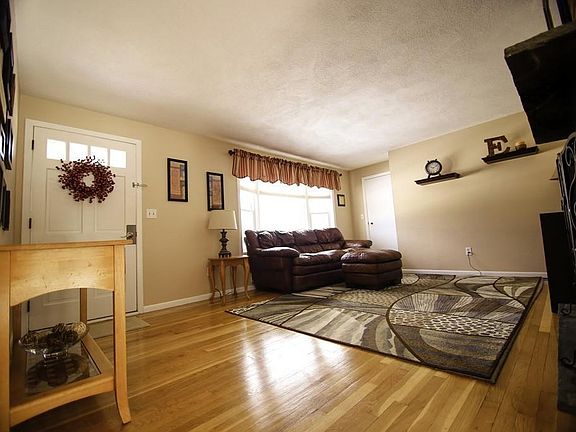 Beautiful and meticulously maintained home situated on .47 acre fenced in corner lot in sought after Village Green Neighborhood is lined with sidewalks leading to the Town Center where you will find public library, restaurants, shops, salons, barber, Town Common, parks, bike path. Proximity to major commuting routes and schools is a plus. This home boasts of many wonderful features including hardwood floors throughout spacious living room with bow window, fireplace, and dining room leading out to spacious deck overlooking large enclosed yard. Kitchen was completely remodeled with brand new granite countertops, white cabinets, breakfast bar and tile flooring. Main bathroom tub and shower and master bath was recently renovated with new tile surround and fresh paint. Lower Level was completely renovated with new wall to wall carpeting, a 4th bedroom or home office and mud room which opens to enclosed garage. This is a home you want to see!