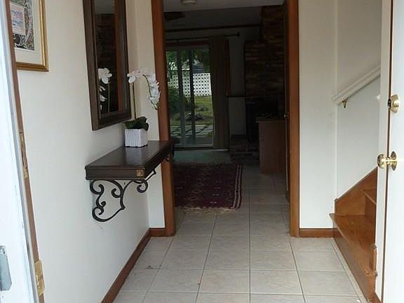 This home has lots of "wish list" items: eat-in-kitchen, family room, master bath, fireplace, 2 car garage, hardwood floors, central air, beautiful outdoor space & an irrigation system! A tiled entry, with coat closet, flows into the fireplaced family room which accesses a 2 car EE garage & has sliders to the private yard featuring a patio area that's perfect for summer entertaining. A guest powder room completes this level. A few steps up, the main level offers an eat-in-kitchen & an open concept living room/dining room with cathedral ceilings & access to a 3 season jalousie sunroom. A few steps up, 2 generous size bedrooms share a full bath while the master bedroom is en-suite with a walk-in closet. The basement, with laundry area, provides additional living space & awaits your imagination.