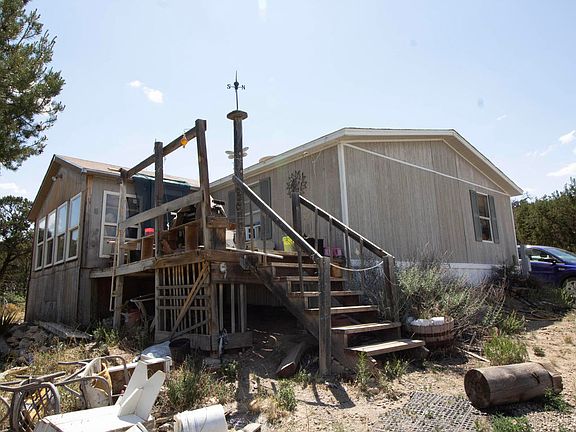 Come and see the potential here! This 3 bed, 2 bath manufactured home sits on 2.5 acres of fully fenced land high on the hill. Beautiful views to the NE while you sit nestled in the trees for privacy. Short drive into Edgewood. Community water. Electric service. Septic tank. This home has everything you need and with some elbow grease and a little sweat equity it will shine once again!