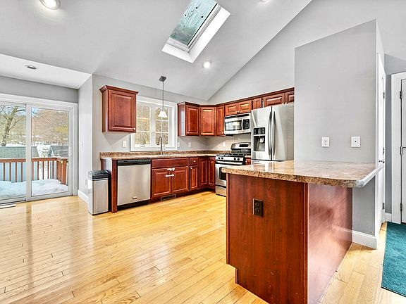 FIRST FLOOR LIVING AT IT'S FINEST, A STUNNING RANCH TO CALL HOME! Built in 2012, this home is as turn-key as it gets and is located in highly sought after West Peterborough, only minutes from all the town has to offer, from restaurants to shopping to grocery stores. Step into the massive open concept family room and kitchen, complete with cathedral ceilings and an abundance of natural light from large windows and skylights. Perfect for the budding chef, this kitchen is equipped with stainless steel appliances, tons of cabinets and counter space and a convenient breakfast bar. Off the kitchen is a double slider that leads to a nice sized back deck great for outdoor dining. There are gorgeous hardwood floors throughout and beautiful engineered hardwood in the three bedrooms. The large primary bedroom is complete with cathedral ceilings and an en-suite, with the remaining two sizeable bedrooms located across from the remaining full bathroom. Downstairs, you'll find a vast finished basement with alluring vinyl plank flooring throughout. This space is the quintessential entertainment zone. Also includes a finished laundry room and a utility room, both with ample storage. The basement has a walkout that leads to a lovely brick patio and firepit. The landscape is equipped with an irrigation system and a nice retaining wall lining the giant driveway with space for at least six vehicles and includes a large shed. WELCOME TO YOUR NEW HOME!
