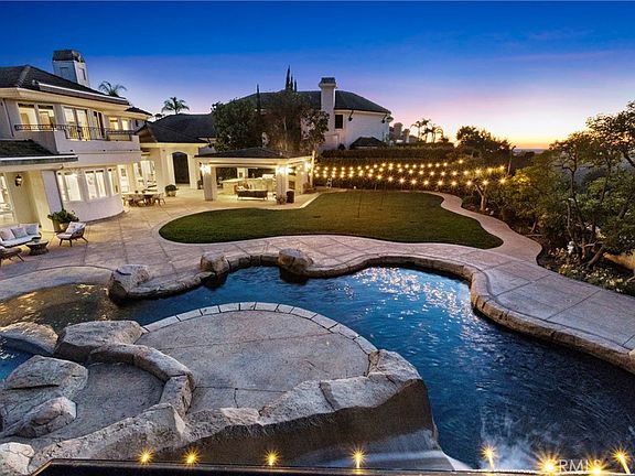 Truly and extraordinary opportunity for this outstanding "Ocean Ranch" custom residence located on a spectacular 34,000sqft, cul-de-sac location (only 4 homes reside on this cul-de-sac) in the coveted "Guard Gated " community of Ocean Ranch in Laguna Niguel. This 4 bedroom, 4 1/2 bath approximate 4700sqft residence contains what could easily be one of the most unique and "Disney Like" backyards in South Orange County. This custom residence was " taken down to the studs" approximately 12yrs ago and at that time was renovated with all new electrical, all new plumbing, 28 solid core doors, new hardware, and a host of extraordinary amenities. The 2-story entry way of this home is truly inviting as well as extremely 'light & bright'! The existing residents during their ownership have invested approx $1 million in this residence "both inside and outside" during their ownership. Most recently the entire interior has been repainted, & new LED lighting installed throughout. Additional features include a main floor bedroom with its own ensuite bath, as well as a main floor separate private office. The floor plan, which truly demonstrates a very 'open & spacious' design inclusive of a breakfast nook area, breakfast bar, built in wet bar, walk in pantry, and an exceptional flow & access to the rear yard. Additionally, a spacious main floor utility room which can also be used for 'additional crafts' & storage with direct access to an oversized 3 car garage. The incredible 'park like' backyard contains a saltwater pebble tech pool/spa boasting a 30 ft waterfall, 10 ft diving cliff and 38ft water slide!! The outside-covered gazebo garnishes a full kitchen, built-in TV, heaters & fireplace. The Ocean Ranch Community contains its own community pool/ spa and sport court facilities. Located within walking distance to St Anne's Elementary School, the Ocean Ranch Shopping Plaza inclusive of a Cinepolis Movie Theatre, Trader Joe's & numerous dining establishments. Minutes to both the Ritz Carlton & Waldorf Resorts, as well as the world-renowned Salt Creek beach with its incredible surfing breaks. Equally close is the Dana Point Harbor & The Lantern District again containing numerous Retail & Dining Experiences! This outstanding residence has not been offered on the market for the last 15 years! This is truly a 'Must See' custom residence in Ocean Ranch with outstanding proximity to our Pacific Ocean & incredible coastline. Pride in ownership is most certainly evident!!