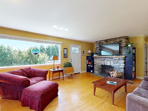 Wonderful 3 bedroom, 2 bath hillside ranch on Mountain View Rd in Jericho. Nestled on .52 acres this home is filled with charm and move in ready. Bright and sunny remodeled kitchen with solid surface countertops, sleek black appliances and a stylish tiled backsplash. The first floor also features 3 bedrooms, maple hardwood floors and updated tiled full bathroom with new Corian vanity. The living room has a large picture window to capture the mountain view and a fieldstone fireplace creating a warm and inviting space. The lower level includes a family room, wet bar area, bonus room and ¾ bath. Plus a convenient mudroom, laundry space, woodstove, workshop/utility room & plenty of storage. Enjoy the mtn view on your sunny deck overlooking the open private backyard fringed by mature trees where you can garden, play or just relax – perfect spot for a hammock! Large shed with mower ramp and wood crib. Affordable to heat, this home has a newer efficient natural gas furnace and gas water heater. Just 5 minutes to High School and just round the corner from the elementary school & village center. This convenient Jericho location is also minutes to Jericho cafe, Joes’ Snack Bar, hiking & mountain biking trails, Mills Riverside Park and Essex Center shops, movies and restaurants. Easy access to ski areas, UVM medical center and Burlington.3D Tour link available!