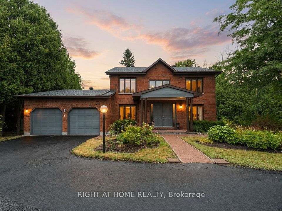Impeccable custom-built home with over 3200 sq/ft of living area situated on over 1 acre of serene privacy in the prestigious Cedarhill Estates. This exceptional property offers the perfect balance of luxury, comfort, and convenience just minutes from shopping, amenities, and Highway 416. From the moment you arrive, you'll be captivated by the beautifully landscaped front and back yards, framed by mature trees that provide tranquillity. Step inside to a welcoming foyer that opens to a spacious office/den with stunning views of the front yard. The main level features generous living and dining areas, perfect for entertaining, and an open-concept gourmet kitchen with two pantries, abundant cabinetry, and an inviting eating area overlooking a large family room. Oversized windows flood the home with natural light, highlighting the gleaming hardwood floors throughout the main and upper levels. A graceful circular staircase leads to the upper floor, where the oversized primary suite boasts a luxurious 5-piece en-suite. Three additional large bedrooms and a family bath complete the upper level. The expansive basement offers endless possibilities. Experience the perfect retreat in Cedarhill Estates, where luxury meets lifestyle and every day feels like home.