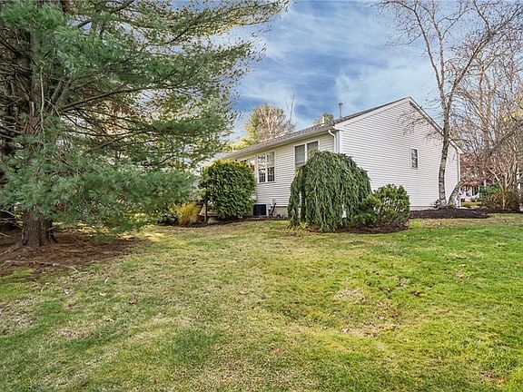 Immaculate 3 bedroom, 2-bath ranch on a half-acre corner lot in the highly desired Orchard Valley neighborhood of Western Cranston. Step inside to an open-concept living/dining room with cathedral ceilings and an updated kitchen featuring new cabinets, countertops, subway tile backsplash, modern tile floor, and stainless-steel appliances. The primary bedroom boasts vaulted ceilings, large walk-in closet, and a full bath, while two additional bedrooms offer comfort and privacy. The finished basement adds exceptional versatility, featuring a spacious family room, office, playroom, and plenty of room for storage. Additional features include a private back deck, new patio with built-in fire pit and bench, newer roof, central AC, two-car garage, and irrigation system. Schedule your private showing today!