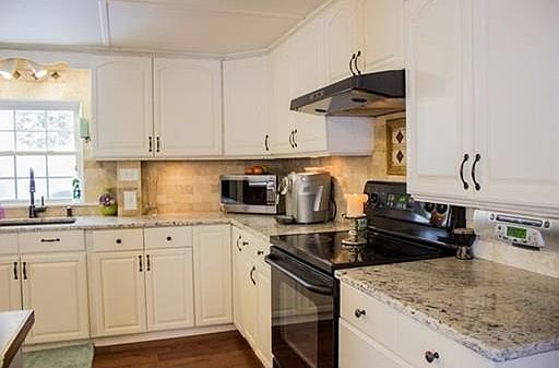 Pride of ownership shows very well in this home. Large updated kitchen with granite countertops, modern copper sink, travertine stone tile on walls and hardwood floors throughout. Home has large bedrooms with good size closets, one extra room with closet can be used for additional bedroom or office . Lots of room to grow in this home. Huge outdoor roof deck 29x14 and Gorgeous stone patio 19x15 for fun entertaining or relaxing with friends and family. You do not want to miss seeing this home. You will absolutely fall in love with this charming home that is move in ready. PRICED TO SELL QUICKLY!!