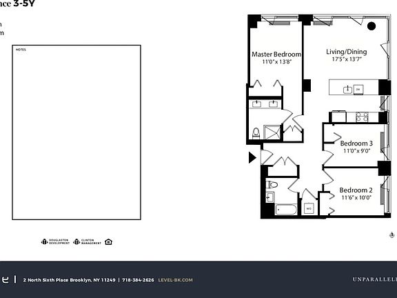 Leasing Office Now Open for Showings By Appointment LEVEL NOW OFFERING 2 MONTHS FREE / 2 YEAR LEASE Net Rent Shown Offer Expires 9.30 for leases with start date on or before 10.1 JUST LISTED CORNER 3 BEDROOM / 2 BATH Were proud to share Level, a new community located in the waterfront enclave of Williamsburg, Brooklyn. Weve painstakingly planned every detail of this unique property, so that you can focus on celebrating the life youve worked to build. Brooklyns iconic Williamsburg neighborhood is constantly evolving and reminding us of its importance on the pulse of the global cultural compass. Join this thriving community to unlock immediate access to some of the citys prime destinations for food, drink, retail, and the arts. In addition to the amazing views and quick access to the best of Williamsburg, Level offers a range of superior on-property features to raise your standard of living. Unlock your daily potential with the following amenities. Level 9 Membership ($85/mo) includes: - Indoor / outdoor pool with skylight, whirlpool and steam room - 24hr Fitness center featuring technogym cardio, weights and functional fitness equipment - Yoga room with stretching equipment and virtual on-demand fitness classes - Club lounge featuring game tables and demonstration kitchen - Party room with kitchen and media - Furnished Level 9 wrap-around terrace with fireplace, grills, and communal lounge/dining areas - Member events & activities coordinated weekly by URBN Playground - Concierge Services Resident amenities also include: - Furnished lobby with fireplace and 24hr concierge - Package Valet with dry cleaning, housekeeping available - On-site bicycle storage - Valet parking available (entrance around the corner at 34 N 7th St) - Kids playroom, styled as a forest, with stage and chalkboard tables - Business center with video conferencing and work stations - Free wi-fi in common spaces Design is at the heart of everything at Level. From creating serene palettes as the foundation for your dream home, to the beautifully inviting communal spaces helping you maintain your body, mind and spirit. Level is about balance. Allow us to help you find yours and set up an appointment today. Please schedule a showing with our on-site leasing. WE ARE OPEN BY APPOINTMENT 7 DAYS / WEEK * Brokers CYOF Sign a New Direct Lease by September 30th, & Receive the 2 Months Free on a 12 month lease. Rent advertised, $5542, is the net effective rent on a 12 month lease with 2 months free. Gross rent is $6650 due monthly * Images are representative of our renovations and may not be of the actual unit. This is an exclusive listing by LEVEL leasing office. 1 and 2 year leases available. Equal Housing Opportunity. No Broker Fee. Unauthorized reproduction of this ad and/or its images in whole or partially is prohibited. Guarantors Accepted.