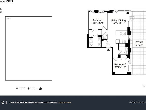 JUST LISTED WATER VIEWS CORNER 2 BEDROOM / 2 BATH HUGE PRIVATE TERRACE - SEE FLOOR PLAN First Showing 9/1 for Lease Start 9/7 Were proud to share Level, a new community located in the waterfront enclave of Williamsburg, Brooklyn. Weve painstakingly planned every detail of this unique property, so that you can focus on celebrating the life youve worked to build. Brooklyns iconic Williamsburg neighborhood is constantly evolving and reminding us of its importance on the pulse of the global cultural compass. Join this thriving community to unlock immediate access to some of the citys prime destinations for food, drink, retail, and the arts. In addition to the amazing views and quick access to the best of Williamsburg, Level offers a range of superior on-property features to raise your standard of living. Unlock your daily potential with the following amenities. Level 9 Membership includes: - Indoor / outdoor pool with skylight, whirlpool and steam room - Fitness center featuring technogym cardio, weights and functional fitness equipment - Yoga room with stretching equipment and virtual on-demand fitness classes - Club lounge featuring game tables and demonstration kitchen - Party room with kitchen and media - Furnished Level 9 wrap-around terrace with fireplace, grills, and communal lounge/dining areas - Member events & activities coordinated weekly by URBN Playground - Concierge Services Resident amenities also include: - Furnished lobby with fireplace and 24hr concierge - Package Valet with dry cleaning, housekeeping available - On-site bicycle storage - Valet parking available (entrance around the corner at 34 N 7th St) - Kids playroom, styled as a forest, with stage and chalkboard tables - Business center with video conferencing and work stations - Free wi-fi in common spaces Design is at the heart of everything at Level. From creating serene palettes as the foundation for your dream home, to the beautifully inviting communal spaces helping you maintain your body, mind and spirit. Level is about balance. Allow us to help you find yours and set up an appointment today. * Images are representative of our renovations and may not be of the actual unit. This is an exclusive listing by LEVEL leasing office. 1 and 2 year leases available. Equal Housing Opportunity. No Broker Fee. Unauthorized reproduction of this ad and/or its images in whole or partially is prohibited. Guarantors Accepted.