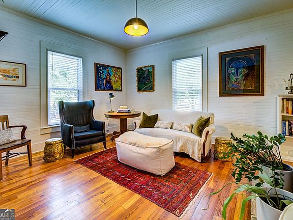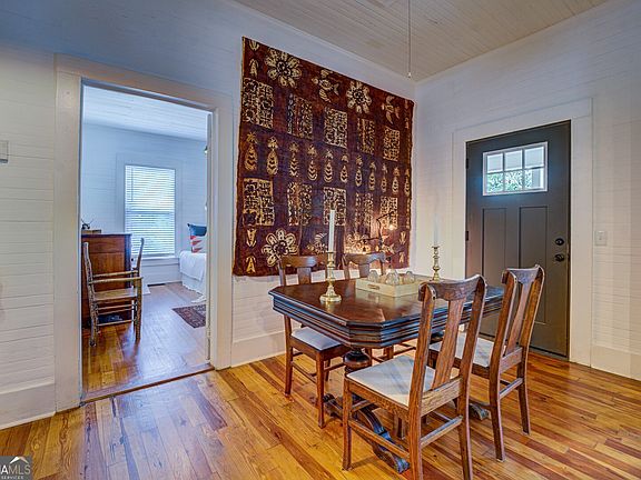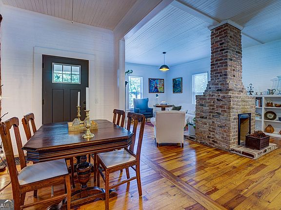 Step into the perfect blend of historic charm and modern comfort in this beautifully restored mill cottage located in the Porterdale Historic District. Originally built as a supervisor's home for employees at the Porterdale Mill which closed in 1970, it has been thoughtfully renovated and lovingly maintained. This 2 bedroom 2 bath home captures the timeless character of 1918 craftsmanship with the upgrades of todays living. The home is set in a prime location in one of the best preserved mill villages in Georgia. Original character shines throughout with beadboard walls and ceilings, complemented by refinished heart pine floors from the 2019 renovation. An open kitchen-living area is divided by a double sided working fireplace. The state-of-the-art kitchen features quartz countertops, stainless appliances, oversized island for additional seating, large pantry and abundant storage. New cabinets, a tile backsplash, and under-cabinet lighting give the kitchen a fresh, modern look and a warm, inviting feel. The primary suite includes an ensuite bathroom with pocket door, glass tile, shiplap walls and quartz vanity. The second bedroom fits a queen bed or doubles as an office or guest room. A rare second bathroom for Porterdale mill cottages was added and is designed to include a laundry area and finished with a pocket door, walk-in shower and quartz countertops. Outdoor features include a spacious front porch that was extended to create an inviting outdoor living and dining area with ample space for a grill. A reconfigured entry and foyer provide easy access from the carport. Additional storage is available in the attic, deep crawlspace, and in the newly added storage building. The exterior was freshly repainted in 2024, enhancing the home's charm and curb appeal. Major renovations include a full electrical rewire with new lighting fixtures, new HVAC system with updated ductwork and all-new plumbing throughout the home. The original chimney and double-sided fireplace were beautifully rebuilt, creating a striking feature that divides the kitchen and living room. The roof on the main dwelling was replaced in 2018 and the carport decking and roof in 2025. This historic cottage was renovated to maintain the historic integrity of the property while adding contemporary features and materials. The home is located just a 1/4 mile from the Yellow River Water Trail, making it ideal for kayaking and scenic walks. It is just minutes from the historic Covington Square, offering a variety of restaurants, shops and entertainment options. It also offers peaceful park views and is situated in a charming, walkable historic neighborhood. Additionally the property is less than an hour to Hartsfield International Airport, Lake Oconee, Athens and a half hour to historic Madison, Hard Labor Creek State Park and the new RIVIAN EV truck plant. The owners have over thirty years of experience renovating historic homes, two of which have been on the Newton Historical Society and the Georgia Trust Ramble home tours. This home offers the rare opportunity to own a piece of Porterdale's history while enjoying modern amenities and lifestyle. The property is ideal as a primary residence, weekend retreat, or an investment.