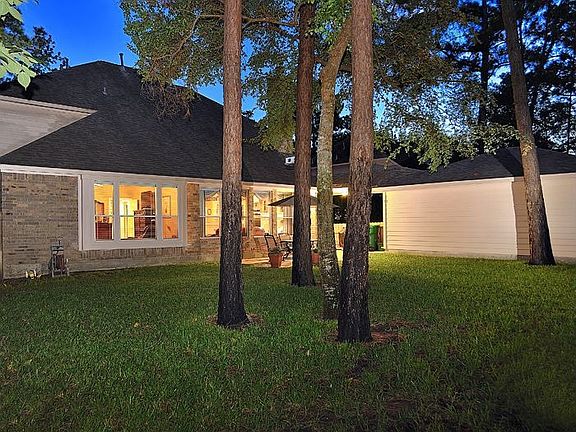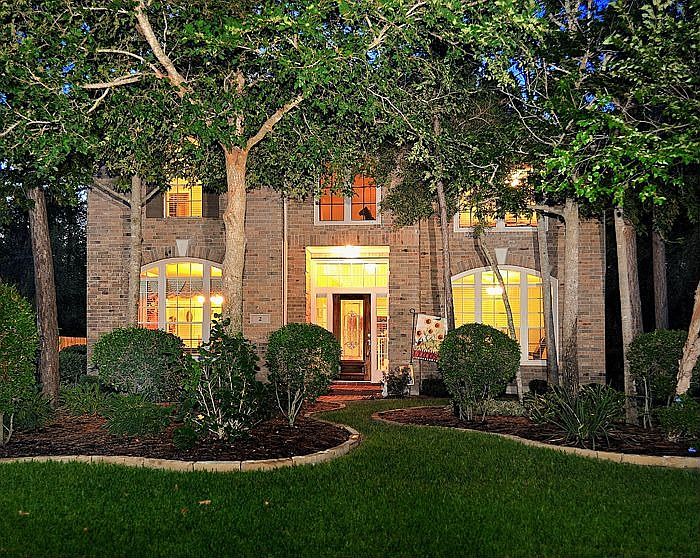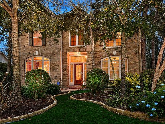 Exceptional Village Builders Arlington plan on a corner, wooded lot in Alden Bridge! Immaculately kept w/soaring ceilings, carpet, tile & hardwood floors, neutral paint colors, crown moulding & wood blinds. Island kitchen w/Corian counters & breakfast bar opens to breakfast room & den w/vaulted ceiling, surround sound & wood burning FP; elegant formal dining; study w/built-ins & French doors; master suite down w/spa-like master bath; 3 generous bedrooms & gameroom up; fenced yard w/patio too.