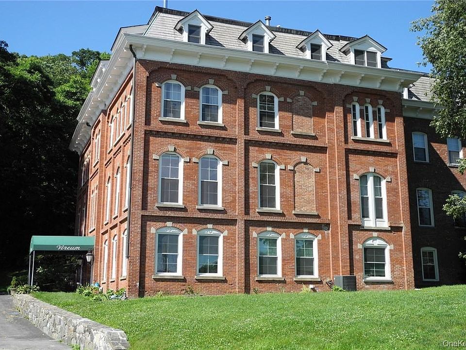 Beautiful riverfront SOHO style loft in converted 1800s brick schoolhouse facing the Hudson River, close to train, restaurants, riverfront, marinas, summer concerts on the river and all that glorious Hudson Valley riverfront life has to offer. Enjoy one level living in this fabulous open plan unit at the best corner spot in the building, with 14 foot ceilings and 10 foot windows, facing the Hudson to the west, with stunning sunsets and glorious light, which glistens off the hardwood floors. This unit has plentiful closets, a newly renovated primary bath, and a marble and terrazo hall bath. The loft bed built into second bedroom allows for use as a bedroom or as an office below and sleeping above. This prime location condo has no-steps access from the first floor lobby secure entry via the elevator to the second floor, plus additional access directly from rear parking lot, only four steps up to the hallway from the unit. The 12-unit elevator building has only three units per floor, providing quiet and a sense of privacy. The huge private front yard overlooking the Hudson can be enjoyed in all seasons. In addition, there are front and rear parking lots plus additional land owned by the complex. Unassigned parking for two cars is included. It's only a five minute stroll to the Metro North train, 50 minute express to NYC. Living is so much easier than in a house, and much more private than in a typical apartment building. The condo takes care of landscaping, snow removal, garbage pickup and maintenance. It's a great lifestyle, close to the aqueduct trail, the Ossining Farmers Market, great restaurants and pubs, Croton Point Park, the Croton riverfront and other nearby Hudson riverwalks and marinas, SingSing Kill brewery, and one of the best lifestyles in the metro area, You can OWN and enjoy this fantastic quality of life in one of Ossining's most noteworthy historic buildings for less than it costs to rent!! Taxes with STAR only $4047 (approx).