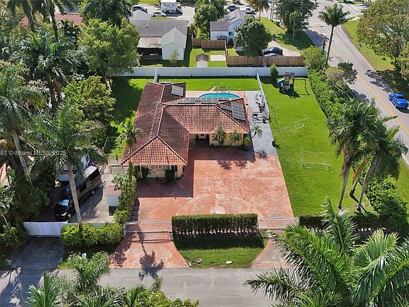 Corner Estate on Rare Half-Acre Lot with Pool & Solar Panels. Beautifully updated 4-bed, 3-bath residence set on a spacious fenced corner lot. Features a bright open layout, impact windows, modern kitchen, and French doors opening to a serene terrace and pool area. Includes a private in-law suite with separate entrance, solar panels, and ample parking on a paver circular driveway. Nestled in a quiet neighborhood near I-95, this home offers the perfect blend of comfort, privacy, and sophistication.