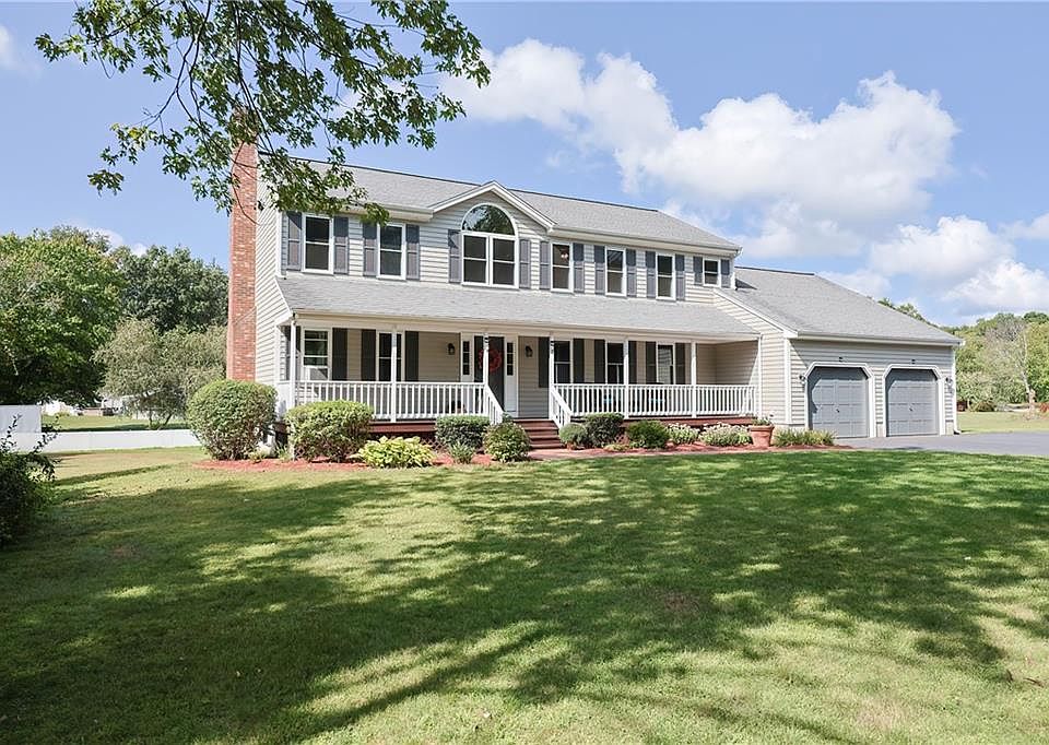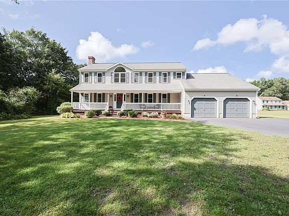 Beautiful Colonial-style home with a welcoming farmers porch, perfectly situated on a peaceful cul-de-sac. This one-owner property has been meticulously maintained and exudes pride of ownership throughout. Enjoy over 3,000 square feet of living space. The main level features a spacious front-to-back living room with a cozy fireplace, a large eat-in kitchen with hardwood cabinetry and stainless steel appliances, and a formal dining room. Just off the kitchen, a vaulted great room offers the ideal space for gatherings and entertaining. Step outside to a freshly painted deck overlooking the backyard. Upstairs, the primary suite boasts new carpeting and a private bath. The partially finished lower level provides versatile space—perfect for a home office, gym, recreation room, or potential in-law setup—along with plenty of storage. All appliances remain, including washer and dryer, making this home truly move-in ready.