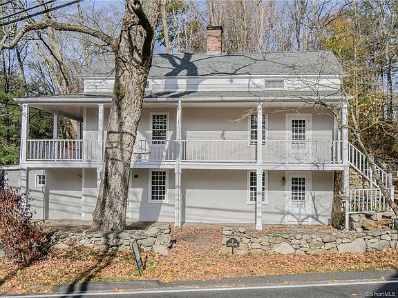 Own a piece of "Weston's History" renovated in period charm built in 1788. Charming Authentic Antique Colonial. This house is an excellent example of a New England Farmhouse with four fireplaces, pine floors, 3.5 baths, and 3 bedrooms each with a full bath. Living room, Dining room, Family Room and Sitting room. Entries to the house are located on the first and second stories. There is a second story porch that wraps around the house. The property was originally owned by Jonothan and Eliphalet Taylor in 1788 and inherited by Jonothan Taylor Jr. in 1793. Though there were other owners of this property in 1970 Alice DeLamar, a prominent heiress and patron of the arts, purchased this house. She was also the owner of the Cobbs Mill Inn. This property has also served as an Inn and a two-family house. Updated features include new roof on house and garage, freshly painted inside and outside, new above ground oil tank, and new gutters. This is a must see