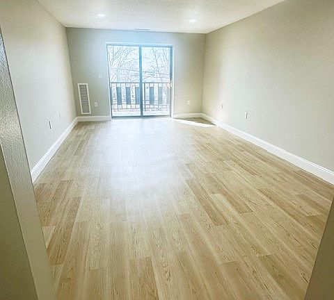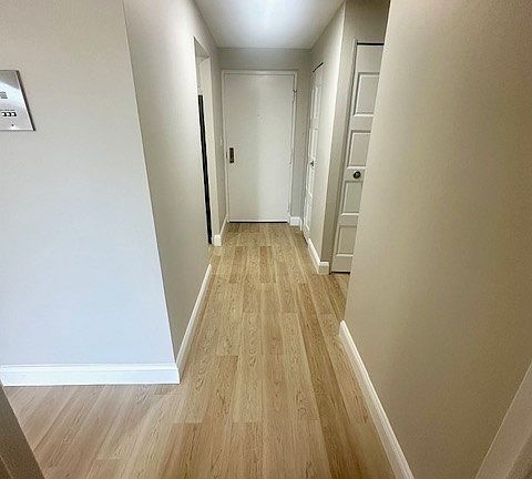 Modern finishesStainless steel appliancesShaker cabinetsWalk in closetLinen closetVinyl plank flooring