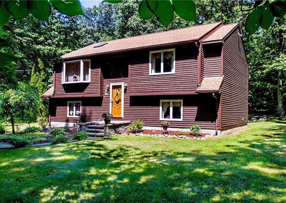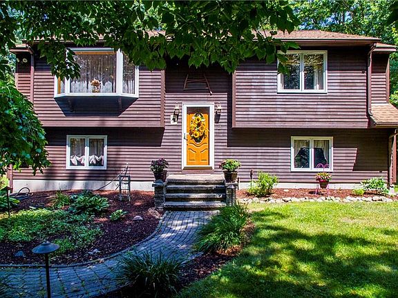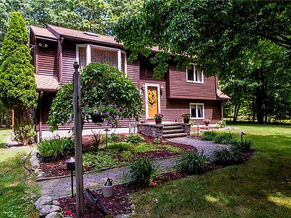 Welcome home to solace and tranquility!! Settle into your own piece of paradise on this secluded, privately owned (and maintained) side road! The property abuts Walker Farm and offers a unique, non-subdividable 3 acre lot with a 3 bed raised ranch on 1 acre, and 2 acres directly across the road (which may only be used for a garage, barn, stable and/or horses). The main level of the home has a bright, open floor plan with cathedral ceilings and skylights, kitchen with oak cabinets and center island, brand new Stonecoat epoxy counters, dining room, family room, hardwood floors throughout the main level, two bedrooms and full bath; the lower level offers a 3rd bedroom, a full walkout, large living room, half bath/laundry room and utility/storage. The home has recessed lighting throughout, central air, 200 amp electric, well w water filtration, 3 year new roof on home and shed. The large, beautifully landscaped yard has deck with a sunken hot tub, perennial gardens, stone firepit w patio, koi ponds, dog kennel, and large 10x14 shed with full electric. Experience rural living but still manage to be near all the amenities. Easy access to all the highways and bi-ways!! Subject to seller finding new home.
