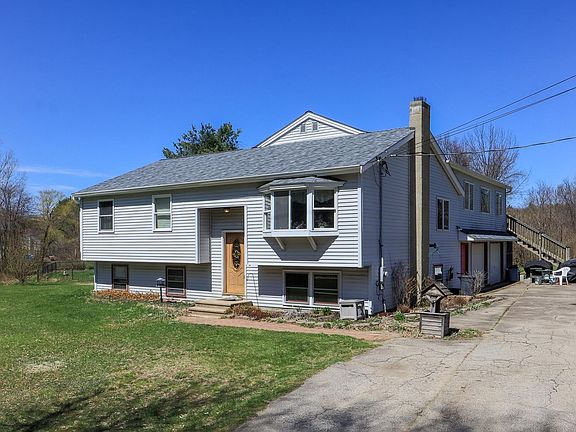 Spacious Home on a level corner lot. Main House is a Split entry with 2-3 bedrooms full bath, living room w/ pellet stove & updated eat in kitchen.Down stairs has one more finished room. Back addition is a raised ranch- 3/4 bath with Laundry Open concept family room & dining room, 4th bedroom & office with sliders to back deck. 2 car garage under. Lots of updates have been made . June closing would be ideal for sellers Showings start Monday April 18th