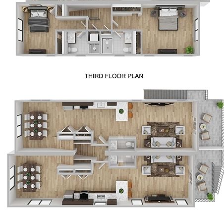Central airLarge private deckOpen-concept layoutEnclosed two-car garageGorgeous hardwood flooringBeautifully appointed bathsStylish cabinetry