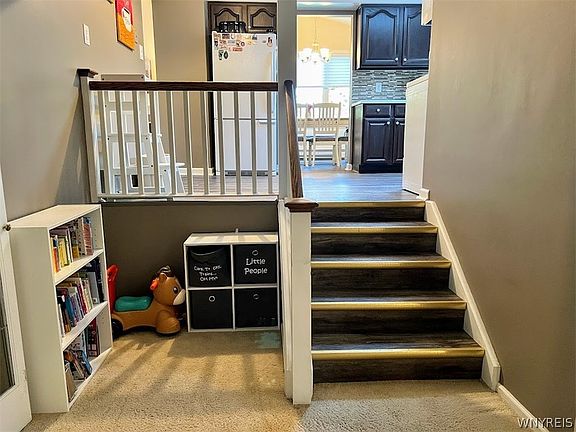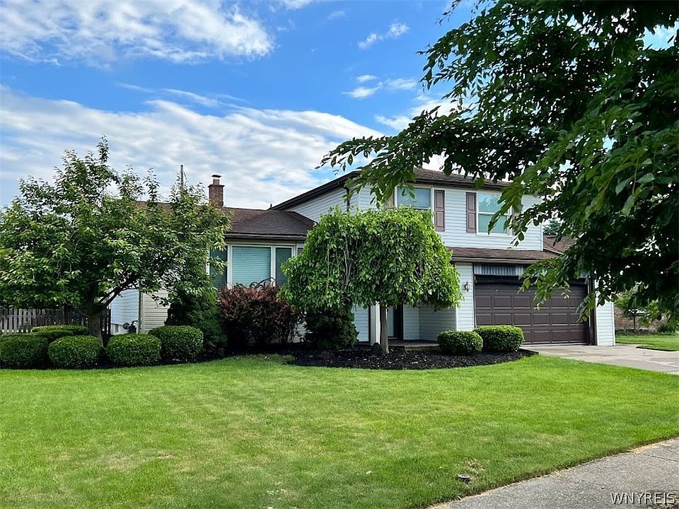 Situated on a large corner lot you'll be able to move right into this meticulous 3 bedroom 1.5 bath split level in the town of Depew. Pretty front entrance with a covered porch leads to a roomy foyer. Spacious living room with vaulted ceilings and large windows. Formal dining room and kitchen have vinyl plank flooring. Kitchen has Corian countertops. Appliances are included. Extra large family room with an electric fireplace, bay window and skylight make this room bright and beautiful. Half bath situated off of family room. Atrium doors lead to a partially covered deck. Upstairs you will find 3 nice size bedrooms with jack & jill bath off of master. Partially finished basement with separate laundry area. Washer & dyer included. Kohler awning (2 years old). Gorgeous fenced in yard, a/c (2 years) includes warranty. 2022-12-06