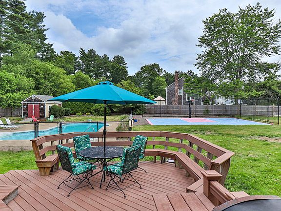 Wonderful Halifax home just minutes from the commuter rail, on a corner lot, located in a quiet cul de sac neighborhood. This home offers 4+ spacious bedrooms, a finished lower level and a comfortable layout that allows for entertaining. The home is over 4,000 sqft including the finished lower level with TONS of storage through out. The kitchen is a dream with an $8K+ appliance upgrade of customized GE Smart/Cafe Luxury Line with many features. You also have the sit around island with more cooking space. From the kitchen, you are easily part of what's happening in the high ceiling and wood fireplace family room thanks to the open floor plan. The backyard is your private playground with an in-ground pool, basketball court, deck, gardens and a beautiful 3 season room overlooking it all. Large 2 car garage with access to the fenced in back yard. If you are looking for it all, don't miss this one!