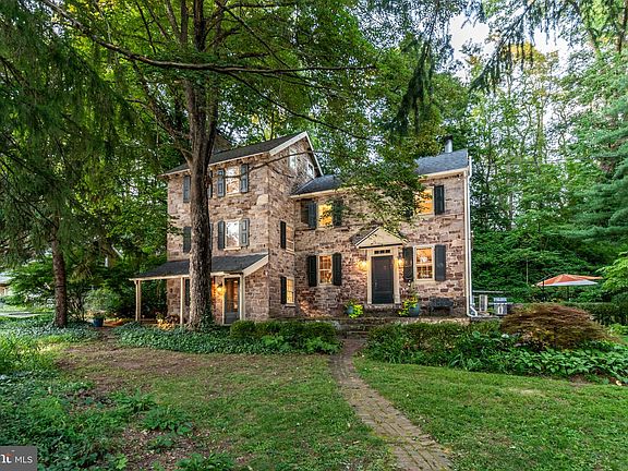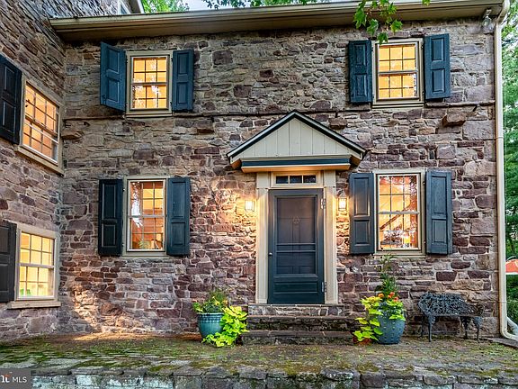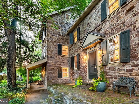 Just steps from the towpath and the Delaware River, this historic fieldstone house has enjoyed quiet transformations over time that blend history with contemporary ease. Originally built by Col. John Sharp, in 1842 and established by Daniel Sharp and Gershom Lambert, it became a general store until 1865. The property retains incredible features from the late 19th century, its thick stone walls, deep-set windows, random width hardwood flooring and exposed hand-hewn beams, but the atmosphere is unmistakably contemporary thanks to updates that balance reverence for the past with a clear-eyed embrace of modern living. The gourmet eat-in kitchen, anchored by granite counters and a farmhouse sink, stainless appliances, a six-burner gas stove with a vented hood, features radiant heated floors and glass-front cabinetry. The generous dining room is ready to host life’s celebrations with ease, featuring elegant stained-glass windows, exposed painted beams, random width hardwood flooring and houses a tucked-away powder room. The adjacent cozy family room is anchored by a stunning stone wood burning fireplace, flanked by charming built-in cabinetry and shelving for books and collectables. Two staircases lead to the 2nd level offering a formal living room focused around the wood burning fireplace w/decorative mantle and flanking built-in shelving and cabinetry. Within the primary, there’s a soothing bathroom with double copper vessel sinks, granite counters and a mosaic tiled walk-in shower plus plenty of closet storage. An adjacent sunlit home office with exposed stone walls and a doorway leading out onto the rear deck, connects the primary suite to a guest bedroom with a decorative fireplace and hardwood flooring. The third floor offers a third bedroom, including a loft, a full bath, and the laundry. Outside, the fenced yard shows off a generous bluestone patio, a covered porch and an open brick terrace open to a series of gardens that soften the home’s sturdy silhouette. An oversized two-car garage sits at the edge of the property, with ample space above for storage. A whole house generator has been added for peace of mind. Within walking distance, find the Stockton Market and the historic Stockton Inn, both recently re-opened and reimagined will most likely become your favorite spot to enjoy. Many options await for dining and antiquing in the historic award-winning towns of Lambertville and New Hope, just a few miles south, with the Delaware & Raritan Canal path nearby it’s a short bike ride away.