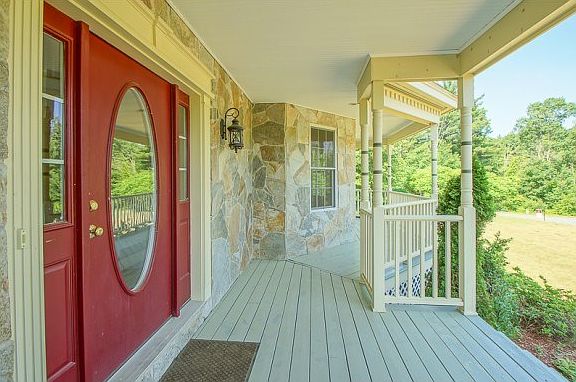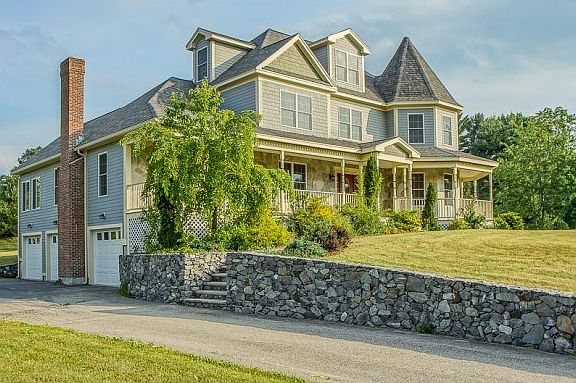 Beautiful Victorian 4BR colonial w/ wrap-around farmers porch in cul-de-sac neighborhood of apple orchards, moments to exit 3/I-93 closer than Castle Reach. Guests will be awed as they enter the 3 story grand foyer. Open floor plan front to back living/ dining rm w/ decorative columns, shadow boxing offer ample space for entertainment. State of the art eat-in kitchen, cherry cabinets, granite counters open to vaulted family room w/ floor to ceiling fieldstone fireplace. 4-season sun rm, tons of glass bring the outdoors in. Den w/ double French doors serves as home office. Curved staircase leads to 3BR-s on 2nd floor, master bath w/ jetted tub & shower, laundry room. Princess suite on 3rd floor w 3/4 bath, walk-in closet accommodate guests. Gleaming HW & tile floors, craftsman-like millwork, freshly painted interior: this home is move-in ready. Well landscaped level yard, expansive stone work, brick pavers & walk-out basement, huge mudroom from 3-car garage add more value.