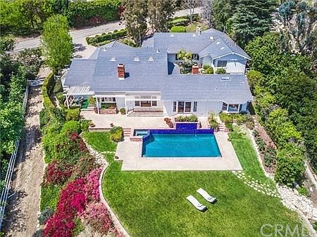 Discover your own private retreat in the exclusive gated city of Rolling Hills. Elegant farmhouse style ranch home offers sophistication blended with comfortability and tranquility. Situated on over 1.3 acres of all useable land. Enjoy brilliant morning sunrises capturing scenic views of the ocean, LA harbor, bridges, city and mountains. Custom built 1989 one-story home with 5 bedrooms, 6 baths PLUS additional 400sf bonus room above garage. Spanning over 6,000 SF of tranquil luxury living. Flowing floor plan provides many private areas to work, live and play. Brazilian walnut hardwood floors throughout. Nature is integrated within this home showcasing lushly landscaped courtyards and soothing waterfall features. Luxurious master suite is over 950sf soaking up pool and spanning views. Sky lights and large windows allow for the natural sunlight to brighten the home. Children’s wing includes family room, laundry room, and three ensuite bedrooms. Guest bedroom located off kitchen. Incredible use of brickwork on the stunning showcase fireplace wall and bar area. Front of home features a picturesque play area with mature shade trees and plenty of yard for outdoor fun. Detailed custom brick work adorns the entry. Meticulously maintained fenced in property includes expansive grassy lawn, sparkling custom pool/spa and mini vineyard with room for expansion. Graded back property prepared to build ADU and horse stable, blueprints available. Warm and inviting modern farmhouse style with elegant finished features. Rolling Hills is a private gated city offering 24-hour guarded access and over 23 miles of horse trails, and lighted tennis courts.