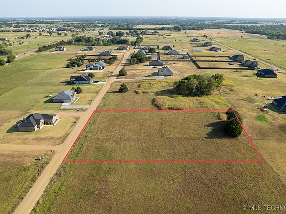 Time to build on this 1.18 acre lot with a minimum 2000 sqft building requirement outside of city limits! Water (Rural Water District #5) and electric (OG&E) available, no builder requirements, and located in Calera school district. *aerial boundary photos are an estimate only