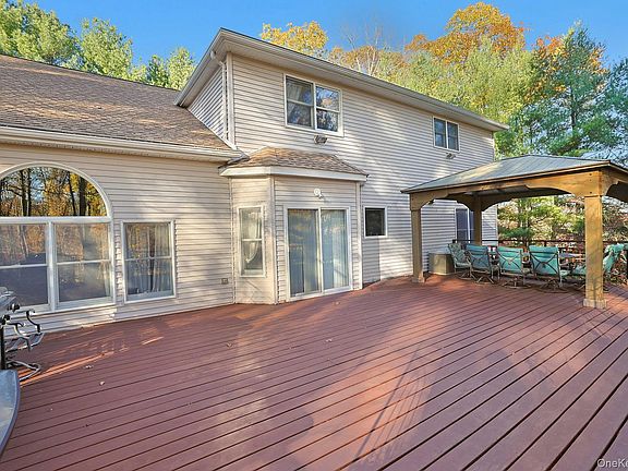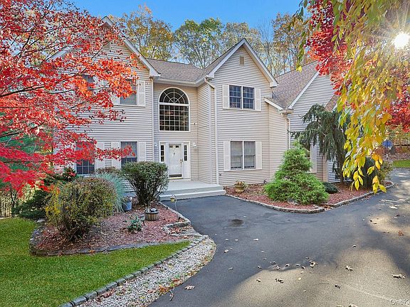 Pomona, NY – AMAZING SPACE, SUPREME PRIVACY! This beautiful 1998 Center Hall Colonial boasts over 3,000 sq ft of living space plus a finished, walk-out lower level, ideal for guests and extended family! Set on a quiet cul-de-sac street at the Mountain at Pomona, this home offers 5-6 Bedrooms and 4 Full Baths on 1.33 acres of private property hemmed in by mature trees. Enjoy the quiet at your own property and a street with no through-traffic! A soaring two-story entry and sweeping staircase welcome you inside, and the beautiful hardwood floors extend throughout. Cooks of the family will love the tastefully remodeled Kitchen with cherry cabinets, quartz counters, stainless steel appliances, tiled backsplash and many custom features. The open design flows seamlessly into the Family Rm, showcased by a towering ceiling and palladium window and complete with a fireplace to enjoy on those cold winter days. Step outside to the expansive deck with a delightful gazebo for warmer weather enjoyment. A Living Rm, Dining Rm, full bath and Library/5th Bedroom with 9’ ceilings complete the main floor. Move up to the 2nd Floor landing for a breathtaking view of nature’s beauty through another stunning window. Upstairs houses the spacious Primary Suite with large walk-in closet and ensuite bath, and three more bedrooms with another full bath. The washer and dryer are conveniently located on the 2nd floor. Continue to the walk-out lower level where you’ll find another bedroom with walk-in closet, full bath, den, spacious Rec Rm with brand new carpet & more. Updates to this home incl new 2-zone C/A ‘22, hot water heater ’24, all new roof & driveway 2019, Generac Generator 2012, Kitchen 2017, Bosch DW 2021, new washer 2025 and gazebo. Enjoy all this and more in a beautiful setting, nearby shopping, parks and Palisades Pkwy and within 45 min to Manhattan. Low taxes, too! DON'T MISS!