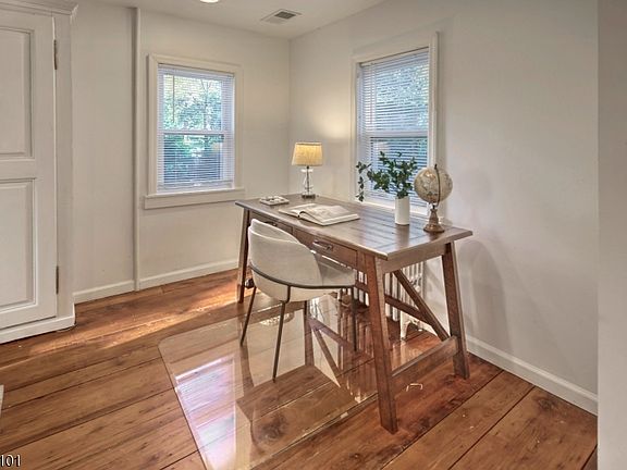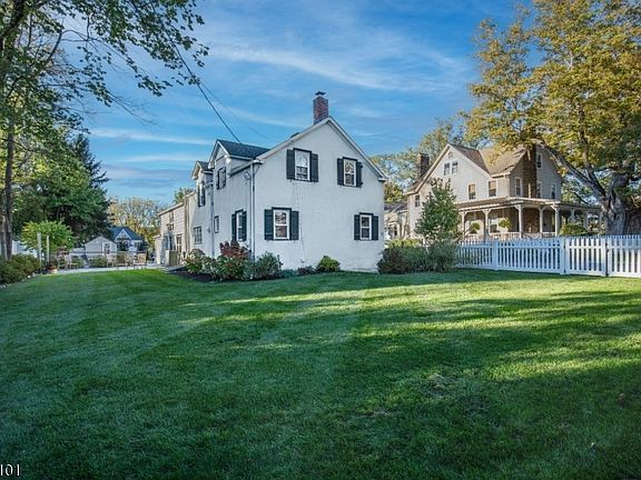 This charming antique house in Mendham Borough offers a prime location on a quiet four-home cul-de-sac, with convenient walk-to-town access to top ranked schools, parks, sports courts, coffee shops and local shopping. The bright and airy home has been fully renovated with numerous updates, including a modern kitchen and bathrooms, central air, new furnaces, recessed lighting, second floor laundry, epoxy-coated garage floors, new garage doors, and a professionally landscaped yard with underground sprinkler system, fencing and patio. The driveway has been paved with cobblestone borders for added charm. The spacious master bedroom features two walk-in closets and bathroom with a tiled stall shower. The unfinished basement boasts high ceilings and is ideal for storage or finishing. Peacock Road is lightly traveled, with well-maintained properties, making this a desirable turn-key home in a great neighborhood.