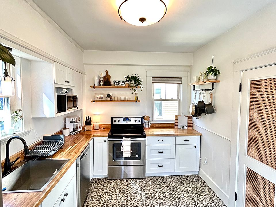 Freshly painted interiorSun-filled living spacesButcher block countertopsThree-season porch