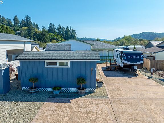 The perfect get away at the Oregon Coast! Excellent location at Osprey Point RV Resort in Lakeside. Large 18' x 73' RV pad, two full hook ups, 50 AMP and 30 AMP! Cozy 10'x 20' Casita with LVP flooring, Full bathroom with walk in shower and tankless hot water heater. Sliding glass door opens out to charming 4' x 20' covered porch! Storage/Laundry shed is 8'x 12' and includes washer/dryer. All buildings have been recently painted. Easy care landscaping features patio and fire pit. $135 monthly HOA includes water/sewer, garbage, use of Osprey Point boat launch and docks. The Osprey Point Pub and Pizza at the resort also features pool tables and Oregon video lottery. An arcade/game room and rec hall is also available to residents. Lakeside is a recreation paradise, with abundant fishing, boating and hiking opportunities. Ride your ATVs to the legendary Oregon Dunes! Ocean beaches are less than 10 minutes away. (RV not included in sale, but is available to purchase outside of escrow.)