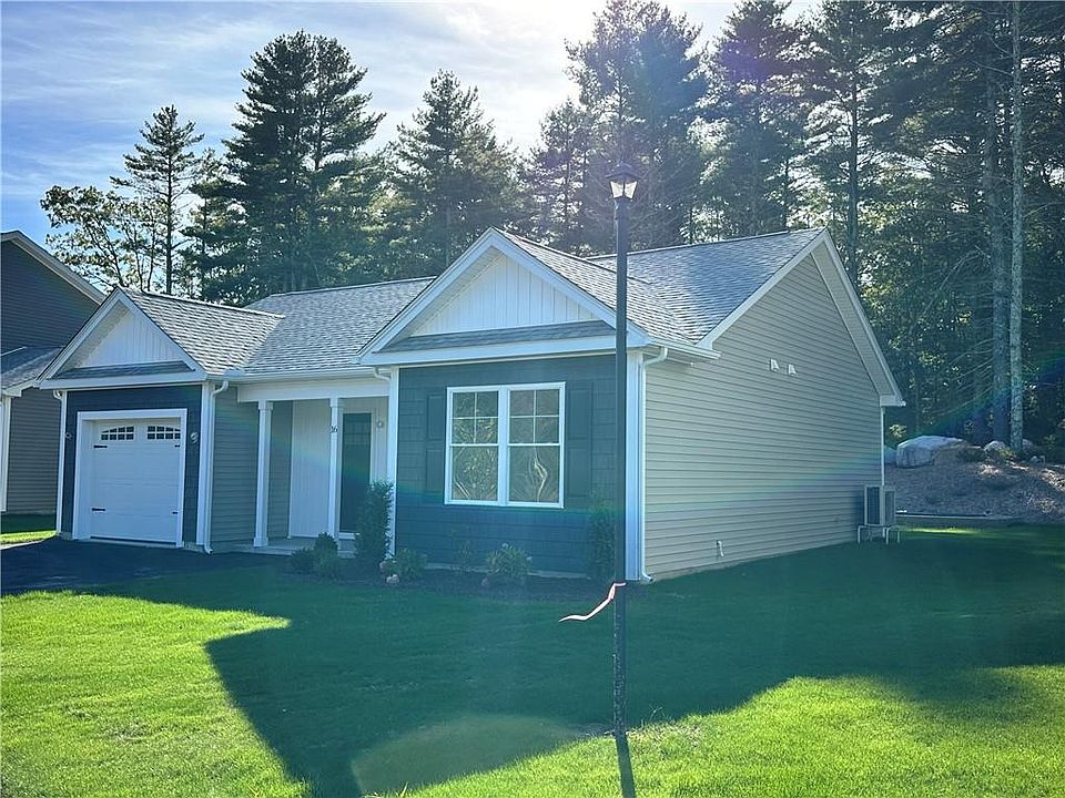 Welcome to this brand-new affordable ranch-style standalone condo, designed for easy one-level living in a peaceful wooded setting in Coventry. This thoughtfully designed home offers 2 bedrooms and 1 full bathroom, with modern finishes including durable vinyl flooring, stylish countertops, and stainless steel appliances. The open layout provides a comfortable flow, with sliding doors leading to a rear patio slab for outdoor enjoyment. Additional highlights include a covered front porch, energy-efficient systems all in a serene wooded brand new development! This is a Condominium / A single family style condo: HOA fee $81/month. Affordable Housing Program: Buyer must meet income eligibility requirements based on household size. This home will be subject to a long-term deed restriction that limits future resale value in order to preserve affordability. For GPS: 730 Town Farm Rd, Coventry, RI. UNDER CONSTRUCTION – interior photos coming soon!