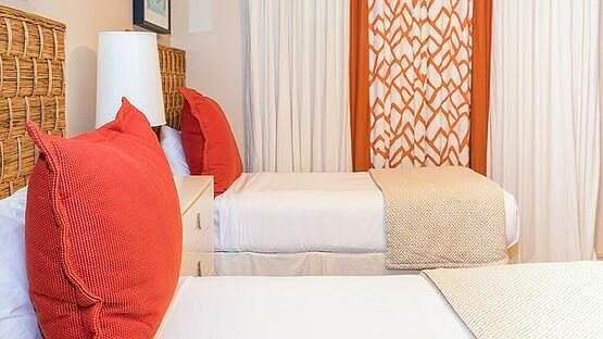 Relax in a corner penthouse residence within the Dorado Beach Ritz Carlton Reserve with stunning, palm-tree strewn panoramic, balcony views of mountains, golf courses, and the lake. The penthouse is located on the gorgeous Dorado Beach Resort Property one of the world's finest tourist beach destinations with lush green mountains, blue lagoons, and emerald fairways. Regardless of how you spend your days shopping, adventuring, or sightseeing, even surf lessons at "Goodwinds" when you arrive home, relax with your family on that penthouse balcony for a perfect ending to another day in Paradise. You'll find a well-equipped kitchen and, if you prefer 'al fresco', you'll appreciate dining outdoors taking in a stunning sunset and scent-laden ocean breezes. You'll discover and experience unique 24/7 concierge-style guest services able to arrange anything from the dedicated tour and adventure planning to in-villa chefs. This 4th-floor penthouse offers: Three bedrooms sleeping 6; with 3.5 bathrooms. Master Bedroom en suite: King Bed, walk-in closet; the master bathroom has a soaking tub, shower, and bidet; glass-inset bedside tables with traditional lamps; a comfy corner armchair; an outstanding "live edge slab" bed-end bench meticulously crafted bringing in a sense of the "outdoors" while providing a practical resting place to put on your shoes; door leads to the patio with its great view of the lake; 40" TV above a credenza; Central A-C; Bedroom #2 en suite: King Bed with upholstered headboard; bedside nightstands with lamps; 32" TV above a multi-drawer credenza; armchair; Walk-in Closet; Tub + Shower; Central A-C; Garden view; Bedroom #3 en suite (kids room): 2 Twin Beds w/rattan headboards; central, credenza-style nightstand with a lamp; 32" TV; Closet; Tub + Shower; Central A-C; General Description: Corner unit has "grande vista" views of the gardens, lake, and golf course Fully air-conditioned Many windows have Palladium Arch Skylights adding "distinction" to the penthouse All bedrooms have blackout shades 4-Seater Golf Cart Flat Screen TV's with cable and satellite channels in every guest room Internet and Wi-Fi access throughout the residence Above ground parking (outdoor) for one vehicle with visitor parking available for guests Two legendaries, Robert Trent Jones, Sr. Golf Courses on property Pets are allowed but require prior permission from the owner Living Room: (Owner wishes guests to live "happily and with good karma"!) Open-design, bright living space adjacent to the dining area as well as the kitchen from which it is separated by a service bar and barstools Sectional deep-cushion couches and loveseat, plus one corner armchair for comfortable reading under a standard lamp Contemporary sideboard below a 50" Flat Screen TV Rectangular, wooden coffee table Wall-to-wall windows lead to a covered balcony overlooking golf course and lake Dining Area: Seats 6 on fabric-upholstered, high-back dining chairs around a rectangular, inlaid wooden table Bathrooms x 3.5: 3.5 modern, stylish bathrooms three en-suite Master bathroom: Spacious, w/tub plus walk-in enclosed shower; his & her sinks Kitchen: Stippled, granite countertops and mosaic backsplash Hi-top service counter served by upholstered, barstools from the living room side Microwave, Blender, Toaster Oven, and Conventional Oven Flush stovetop below a metallic extractor funnel augmented by a ceiling ventilator Double sink Double-door Refrigerator with Icemaker Dish Washer (GE Monogram) Patio Covered w/surround, pull-down/extender shades for privacy & lighting control Outdoor couch and courtesy table 4-Seater outdoor dining table with rattan-backed, cushioned dining chairs Bar-B-Cue View: Tropical garden, landscaped golf course - with mountains in the distance Laundry room: GE Washer and Dryer Provided Linens and towels Local Dorado Beach Amenities: Golf cart or walking access to Hangar Park in Dorado Beach East a fun playground and pool for children with an interesting historical focus about Amelia Earhart's visit to Dorado right before her disappearance. Short ride to the Spa Botanico Playgrounds Ask about the resorts' new "House Guest" program (formally "Club Membership") The "one-and-only" Dorado Beach miles of white sandy beach. 11 Miles of walking, jogging, and biking paths on the Rockefeller Nature Trail, a walkable open-air sanctuary from land to sea. Great Puerto Rican adventures plus the shopping areas of Dorado; just 35 minutes from the casinos, museums, and nightlife of San Juan Concierge offerings include (at additional costs): Personal chef services Pre-visit grocery shopping Excursion advice and planning Daily cleaning Porta cribs Pets are allowed but require prior permission from the owner