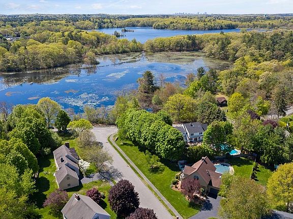 Rare opportunity to own Former Model home....Amazing Post and Beam Contemporary overlooking Dishful Pond, with water views, 300 ft. of road frontage, Professionally landscaped grounds, sprinkler system. 20 ft. ceilings in living room with skylights and fireplace opens to deck, 4 bedrooms, Master opens to 2nd floor deck with water views, 2nd floor loft with balcony. Large Jacuzzi in the 33 Ft. basement family room with wood stove, tin ceilings.. and pool table. Stained Glass windows in Master, Cedar closets. Oak Hardwood floors throughout, Kitchen is open to living room with beautiful exposed beams everywhere, new stainless steel Bosch/Kitchen Aid appliances, the breakfast bar, counter tops are dramatic "Absolute Black Granite"! Custom in-ground gunite pool, natural stone walls and patio, custom built outdoor kitchen with natural gas Kitchen-Aid Grill. Two car attached garage, New Security System, New heating system, New A/C, New hot water, New skylights, New Kohler toilets, New brick entry way stairs, New appliances, Anderson windows, natural cedar siding…. located on a private cul de sac with all custom built homes!