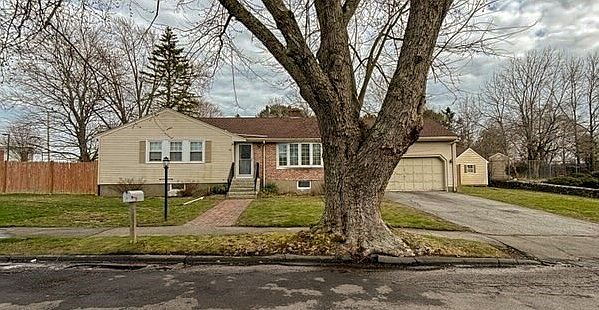 Welcome to this charming ranch style home, where meticulous care creates a welcoming feel. Upon entering you will be greeted by an inviting atmosphere with an abundance of light filtering through the large bow window, illuminating the living room with hardwood floors and cozy fireplace. A small older style kitchen with a breakfast nook is adjacent to the dining area which provides a cozy spot for family meals. The home features 3-4 bedrooms each offering comfort and privacy. The main bedroom includes a 3/4 bath for added convenience while the other bedrooms share a well appointed bathroom. The full basement boasts a very large bonus room, an office and laundry area in the modern 3/4 bath. Perfect for a teen suite or multigenerational living. One of the standout features of this home is it's potential for expansion. Step outside and you will discover a sprawling kid friendly yard, perfect for outdoor activities. The outside shed can store your summer furniture and barbecue.