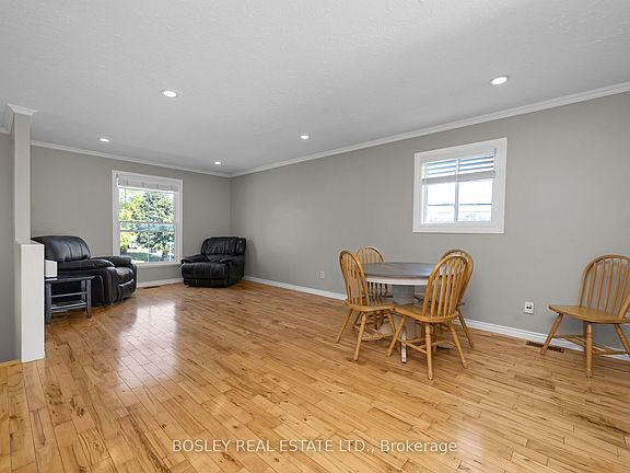 Beautifully Designed & Landscaped Raised Bungalow Linked Home Is Attached Only At The Garage, Offering The Privacy Of A Detached Home. Perfectly Situated On An End Fenced Lot, Just A Short Walk To Schools, Shopping & The Downtown Core. Step Inside To Discover A Bright, Open Living And Dining Area With Gleaming Hardwood Floors & Elegant Crown Moulding. The Eat-In Kitchen, Complete With A Charming Bow Window, Overlooks The Backyard Ideal For Family Meals &Morning Coffee, Complete With Built In Shelving & A Large Pantry. Lower Level Features A Spacious Family Room With A Walk-Out To A Large Tiered Deck & A Fully Fenced, Private Yard, B/I Microwave & Dishwasher. East Commute With Highway Access
