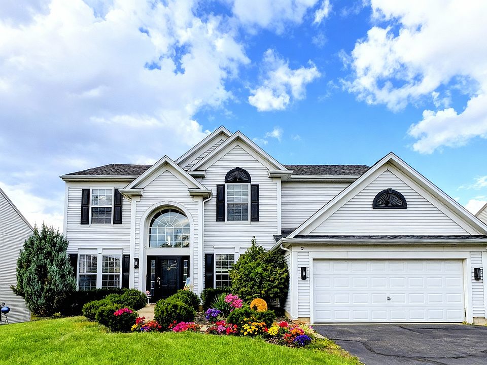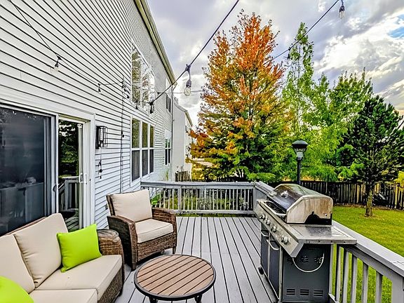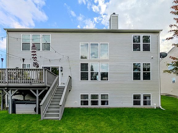 Experience refined suburban elegance in this stately 5-bedroom, 2.5-bath home boasting over 3,000 square feet of beautifully designed living space. Perfectly situated on a premium cul-de-sac lot, this residence blends timeless architectural charm with modern upgrades and thoughtful touches throughout. Step into the dramatic two-story foyer and family room with a stunning fireplace centerpiece-an inviting space ideal for both entertaining and relaxation. The formal living and dining rooms exude sophistication, while the spacious kitchen offers painted cabinetry, a Samsung 4-door French-door refrigerator, stainless steel appliances, and abundant counter and cabinet space. The first-floor bedroom adds versatility for guests or a home office. Upstairs, the primary suite impresses with tray ceilings and ample closet space. Enjoy gleaming hardwood floors, a full basement, and a two-car attached garage. Outside, unwind on the rebuilt and freshly painted deck (2023) overlooking the expansive yard-perfect for gatherings and quiet evenings. Recent enhancements include a Schlage Encode Smart Wi-Fi front door lock (2023), Ring doorbell (2024), new furnace with 10-year parts warranty (2025), Bradford White water heater (2023), and whole-house humidifier (2022). The Maytag Smart washer and dryer (2022) add extra convenience. Located near top-rated schools, parks, shopping, and commuter access to I-55 and I-355, this home delivers the perfect blend of luxury, comfort, and practicality in one exceptional package.