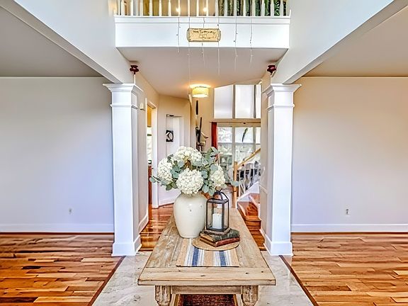 Stunning fireplace centerpieceModern upgradesTimeless architectural charmSpacious kitchenGleaming hardwood floorsExpansive yardPremium cul-de-sac lot