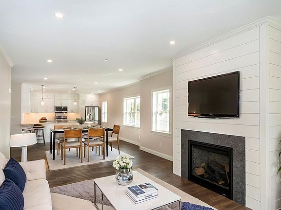Welcome to this stunning new construction condo, offering two levels of thoughtfully designed living space. Combining modern luxury with everyday comfort, this home features an open-concept layout, high-end finishes, and rich hardwood floors throughout. The bright, white kitchen is a standout, showcasing quartz countertops, stainless steel appliances, and abundant cabinetry. The spacious living area centers around a gas fireplace with stylish shiplap detailing—perfect for both relaxing and entertaining. A main-level bedroom offers flexible living arrangements, while the upper level includes a serene primary suite, a dedicated home office, and a cozy sitting area ideal for reading or unwinding. Spa-inspired bathrooms feature designer tile and sleek glass showers for a touch of everyday luxury. Conveniently located near major highways and a vibrant shopping center filled with dining and entertainment options.