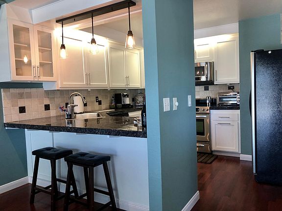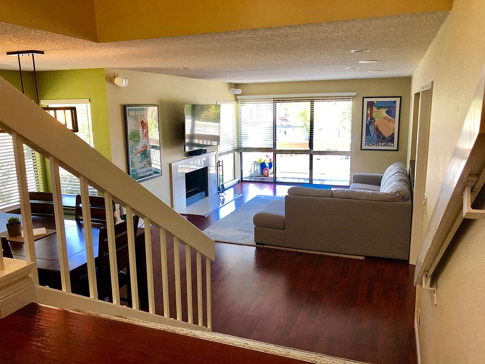 Available 9/1 but could be ready earlier. Located at the top of Crestview Dr "Top of the World", 8 minutes from downtown San Carlos and 5 minutes from HWY 280 this 3 bedroom 2.5 bathroom consists of 3 levels and is part of the Crestview Park HOA. It has a very unique remodel that has opened up the floor plan making the 1st level of kitchen, dining room, living room and family room into a special entertaining area with hardwood floors throughout. It has a large laundry room with a stacked Samsung washer/dryer that is 1 year old. It has an additional space in the form of a reading loft above the stairs. The family room has a fireplace and is wired with built in surround sound speakers along with a remote control repeater system so all your components can be hidden from view. It has a unique breakfast bar type eating area behind the couch. It also has built in speakers designed for a dual zone receiver in the living area which owners have used as a rec room. Living room area has a built in bar with glass shelves and storage. New light fixtures in kitchen and dining area. Upstairs are 2 nice sized bedrooms with a shared full bathroom. The huge master has views of the bay and includes an ensuite with 2 sinks and a separate area with shower/tub and toilet. All 3 bedrooms have new window coverings. The HOA has 4 tennis courts, a large pool, play area and a clubhouse just a short walk down the street. The evening walks provide you with endless views of bay, San Francisco, tons of green space and beyond. Hiking trails in abundance just a few minutes walk away. Some of the best Mountain biking trails right outside your door. Top rated schools. Amazing place for a family. You will feel miles away from the hustle and bustle of city life yet great restaurants and downtown San Carlos (The City of Good Living) is just an 8 minute drive away. Edgewood/280 exit is only 5 minutes away making any commute that much easier. Could be rented partially furnished. Owner pays $595 HOA