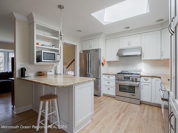 TWO Queens Drive, a beautifully updated and move-in ready home in the heart of Little Silver. Centrally located within walking distance of all town schools, playgrounds, and the phenomenal downtown district of Little Silver. As you enter the home, you'll be greeted by an open-concept living and dining area with plenty of natural light and hardwood floors throughout. Updated kitchen boasts stainless steel appliances, granite countertops, and a large island that's perfect for entertaining.