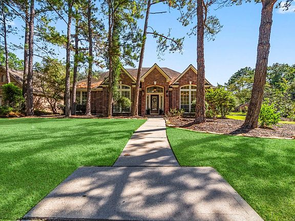 Rare single story, 4 bedroom home on a corner culdesac lot! Recently updated with new light fixtures, paint, and carpet. High ceilings and abundant natural light create a spacious feel. Enjoy two fireplaces, open living space, and a well-designed floor plan. Walk to top-rated schools in The Woodlands. Prime location near all the amenities that make The Woodlands so desirable. Never flooded.