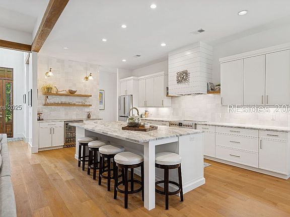 Experience the best of modern Lowcountry living in this exceptional residence, built in 2022 by Southern Coastal Homes, one of Hilton Head's premier custom builders. Perfectly situated near the marina within the private, gated community of Long Cove Club, this home showcases thoughtful design, timeless craftsmanship, and refined details throughout. The open-concept plan invites effortless entertaining with soaring ceilings, abundant natural light, and seamless transitions from indoor gathering spaces to outdoor living. The chef's kitchen features top-of-the-line appliances, custom cabinetry, and an oversized island that anchors the heart of the home. A spacious great room, elegant dining area, and flexible living spaces provide both sophistication and comfort. Retreat to a serene primary suite, while additional guest suites ensure comfort and privacy for family and friends. Outdoors, enjoy a large deck with hot tub, perfect for unwinding after a day on the water or the course. A screened porch with fire place extends the seasons and creates a cozy gathering space year-round. With state-of-the-art construction, energy efficiency, and access to world-class golf, tennis, boating, and club amenities, this residence offers an unparalleled opportunity to enjoy Hilton Head Island living at its finest.
