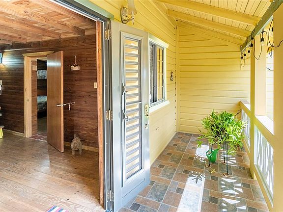 Beautifully crafted treated-wood homeSurrounded by lush vegetationSurrounding greeneryThree spacious bedroomsLush tree-filled landRadiates warmth and serenity