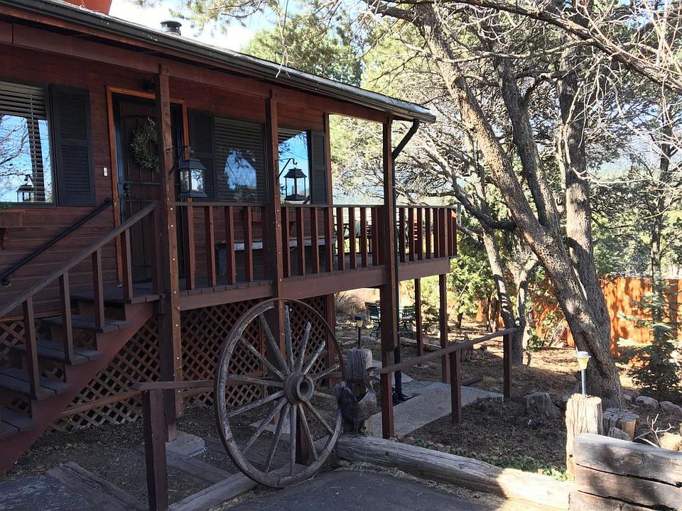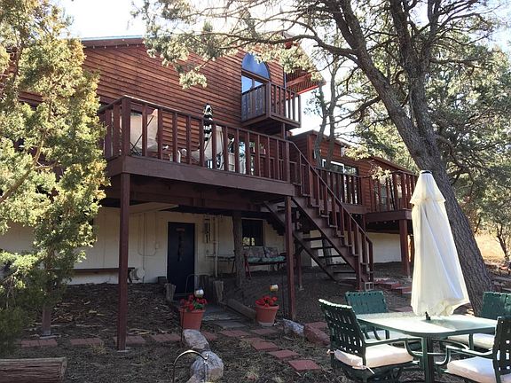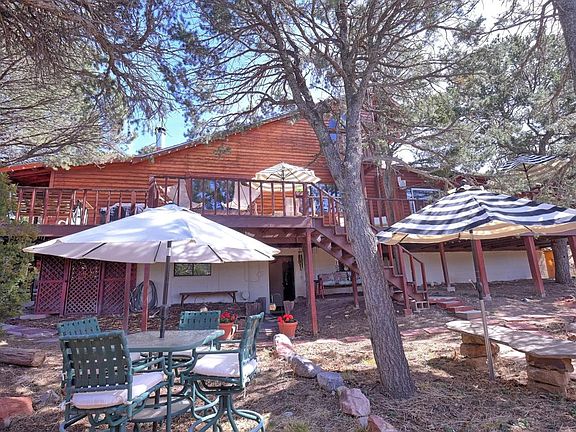 Exceptional, rare & historic 1800's former 1-rm schoolhouse relocated from Martineztown, ABQ in late 1970's. Amazing, modern, right out of a magazine, ready to move in. 3 bd/3ba, 2 living areas plus bonus 1bd/1ba, kitchenette apartment in coveted Pinon Ridge Estates. Original hardwood floors, clawfoot tub. Remodeled luxury master suite, custom vintage lead pane windows from LA hotel, private deck stunning mtn views, jetted tub, walkin closet. Lg deck for entertaining. Waterfall with pond, varieties of pines, gardens, fruit trees, roses, 3/4 wooded acre, short walk to open space, trails, lg fenced yard with dog kennel. So many dreams realized; hiking, gardening, parties, stars. This is a home for a lifetime. Storage, 2 wells, new septic system 2012.