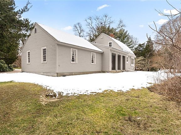 2 Ridge Road is a Bow House, a modern version of the antique bow roof cape popular in some seafaring communities. This one owner home was designed and built in 1979 for year-round life in Watch Hill, Rhode Island. The Main living areas including the Kitchen, Living Room with woodburning fireplace, Dining Room with built-in sideboard, plus the Primary bedroom and one full bath are on the first floor. A breezeway style porch connects the oversized garage to the interior. The porch presents opportunity to connect to the outside or to be infilled to create a new room of your liking. The bright, airy front foyer stairway flows from first to second floor. Travel up to find two additional bedrooms and one full bath. The 1.12-acre grounds sweep the corner of Ridge and Watch Hill Road. The land is mostly flat, park-like with mature trees. There is space for you to consider additional outdoor living enhancements if you like. Conveying in its present condition, ready for you to enjoy now for summer 2024 and to add your style over time, 2 Ridge Road could be your chance to own in the beautiful southwestern corner of Rhode Island and enjoy all that the Glen Way/Ridge Road neighborhood, the village of Watch Hill and Downtown Westerly offers.
