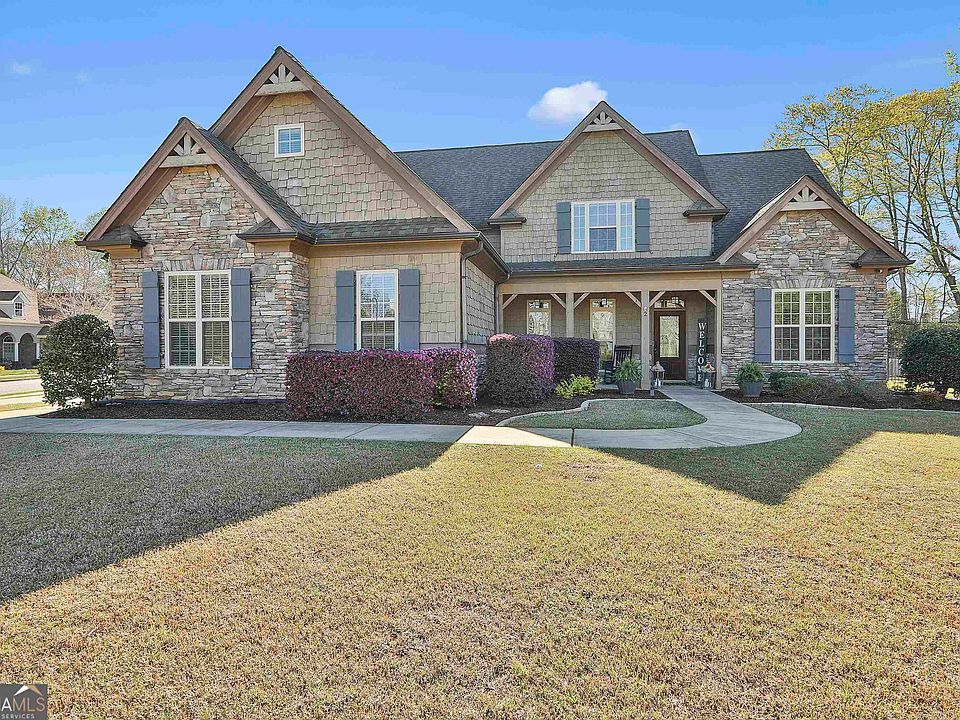 Welcome home to this BEAUTIFUL 4-bedroom, 3 1/2-bathroom Craftsman Style home nestled in the heart of Summergrove, Newnan's Premier subdivision. This beautiful crafted home has many upgrades. Upon entering, you're greeted by the timeless elegance of the main level, which hosts the spacious master bedroom featuring an en-suite bathroom, offering both convenience and privacy. Custom trim work, accentuating the home's craftsmanship, while beautiful hardwood floors throughout the entire home add charm to the living spaces. The heart of the home lies in the vaulted family room, where a stone fireplace serves as a focal point, creating a cozy ambiance for gatherings. Adjacent to this inviting space, the breakfast room seamlessly flows into the gourmet kitchen. Here, you'll find stainless steel appliances, including a double oven, granite countertops, and custom wood cabinets, catering to the needs of every chef. A large walk-in pantry and a well-appointed laundry room with a wash sink further enhance the functionality of this area. The upstairs features a spacious loft area offering a versatile space ideal for work or relaxation. Three additional bedrooms and two full bathrooms provide ample accommodation for family and guests, ensuring everyone's comfort. Step outside and indulge in the delights of outdoor living on the expansive covered screened porch, where summer nights are best spent lounging or entertaining. The fenced backyard offers privacy, while the oversized 3-car garage provides ample storage space for vehicles and belongings. Conveniently located near I-85, as well as an array of restaurants and shopping.